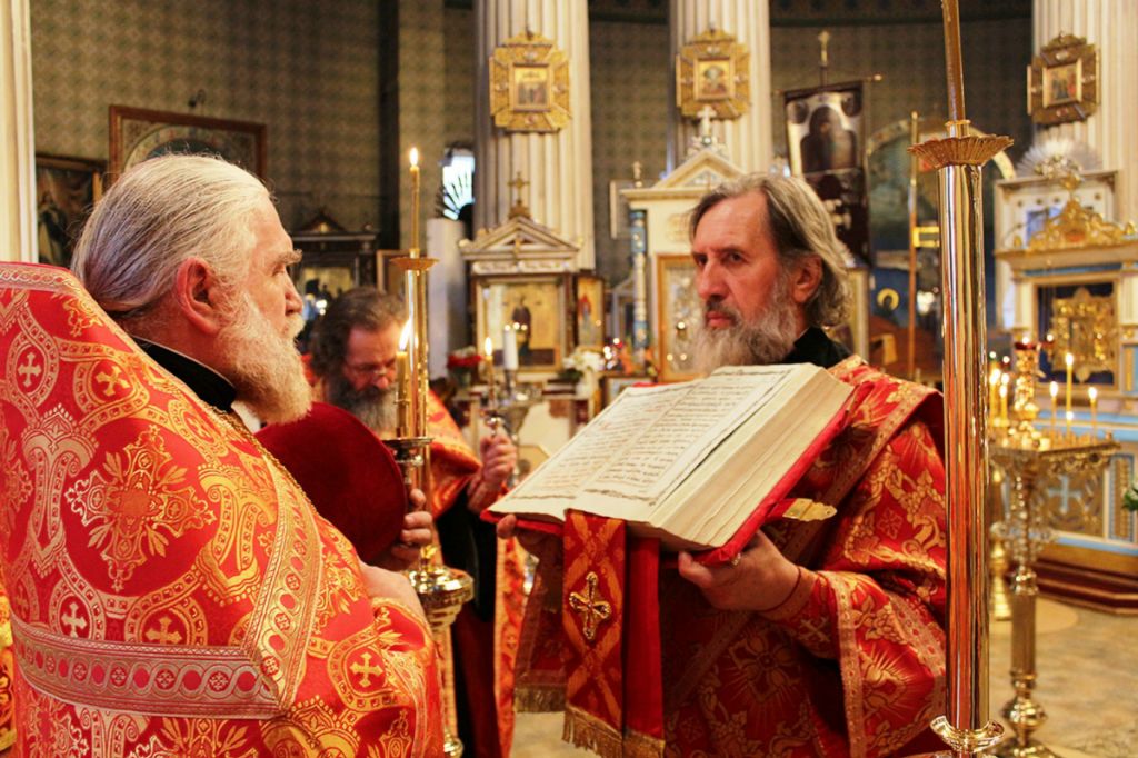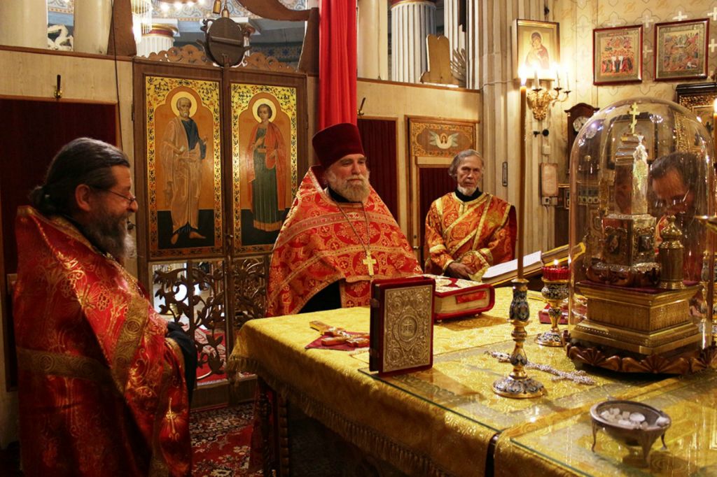 Богослужение возглавил клирик храма протоиерей Сергий Назаров в сослужении протоиерея Николая Приказюк, иерея Василия Фокши и диаконов Александра Акатова, Иоанна Петрова, и Вадима Спирина.
